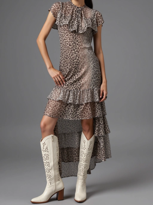 A superfície não-reflexiva do Couro Fosco sob Iluminação Natural Externa elimina o vale do estranho. A física do material nos tornozelos finos, capturada em pé estático, corresponde à textura e interação com a luz do mundo real. Isso cria visuais confiáveis para compradores de moda de verão.