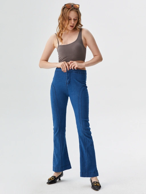 Fotografi Mode Berbasis AI: Atasan Bergaris untuk Model Studio Kaukasia