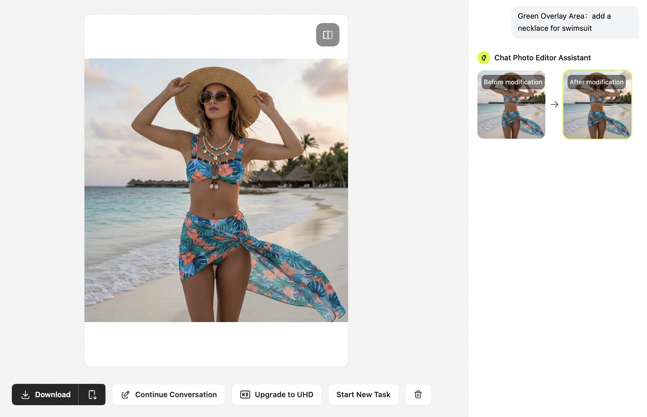 Review the edited result and continue to modify an image if further adjustments are needed. This continuous AI photo retouching workflow allows multiple revisions until the image is ready for product listings, ads, or marketplace uploads.
