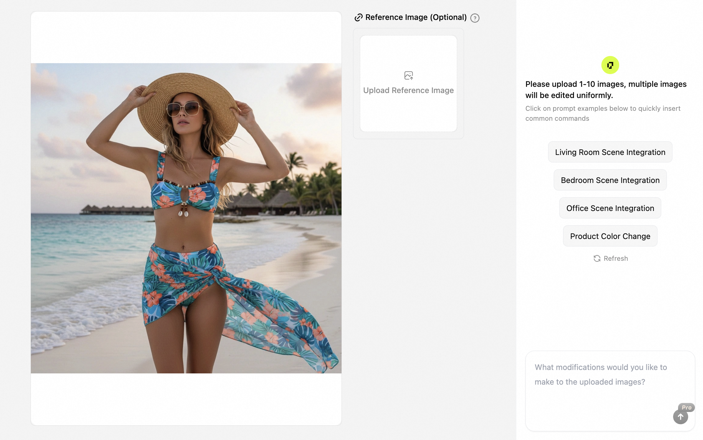Generate high-resolution edited images suitable for ecommerce listings, ads, and marketing materials. Edited images can be further enhanced using built-in AI image enhancement tools, supporting continuous refinement from the original or previously edited versions.