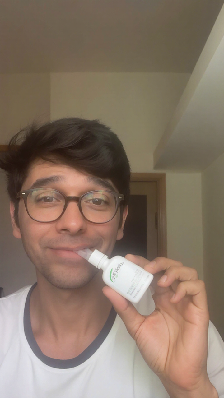 The product's rigid cylindrical shape with minimal hand indentation demonstrates physical weight and real scale. The hand anatomy shows natural curvature without distortion, confirming the product's actual size and material integrity through tactile physics.