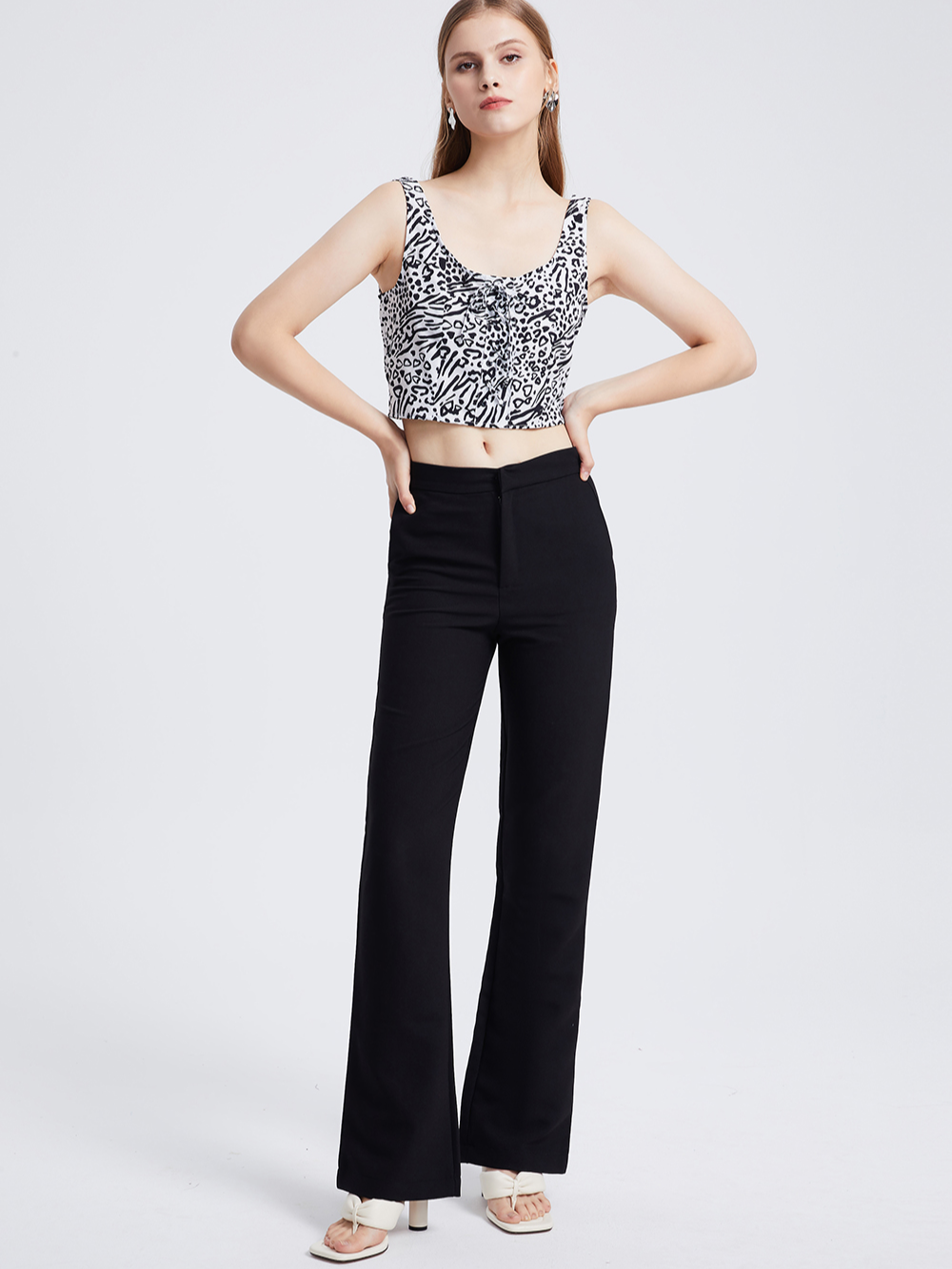 The Pale Skin features and static standing pose of the Studio Model are essential for capturing the North American market. This archetype aligns with the market's visual preferences for Women's Tops, driving engagement and sales.