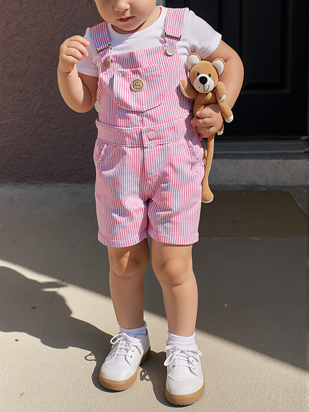 Natural outdoor light on concrete pavement enhances 45-degree angle shots, ensuring 100% visual consistency for back-to-school listings. This builds trust for parents searching for toddler sneaker fit.