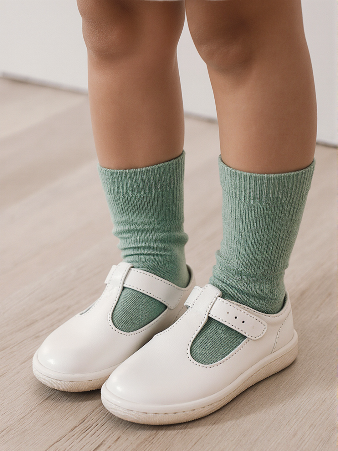 The White Crew Socks and Green crew socks styling is critical for Kids' Shoes. It captures high-intent Global traffic as parents search for specific sock-and-shoe combinations for kids.