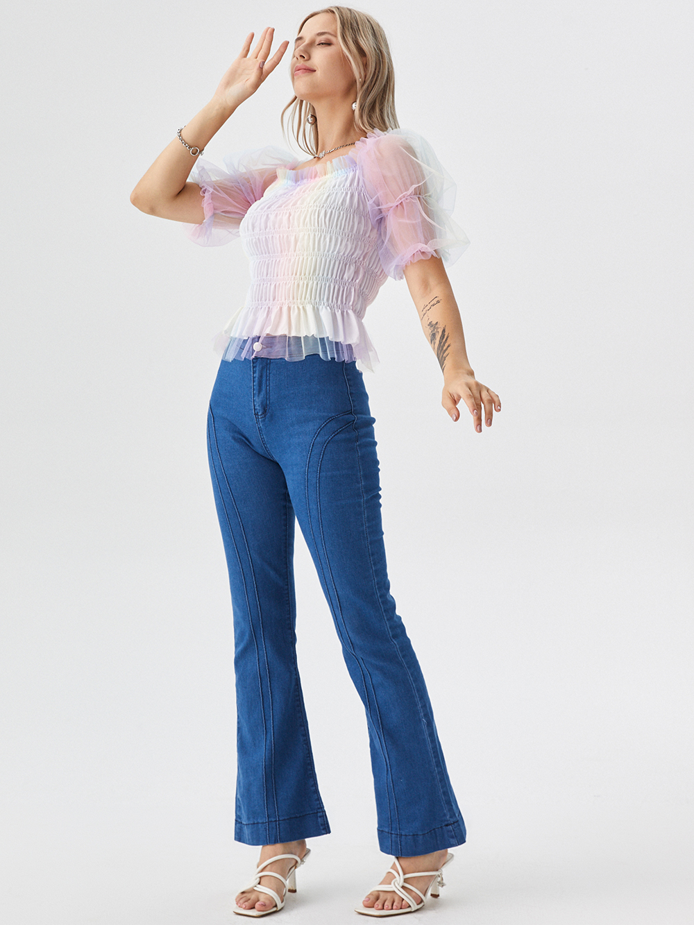 AI restores the unique lightweight knit fabric with smooth drape and light gray accuracy through advanced material physics simulation under soft studio lighting. This eliminates the plastic look, resolving high cost of hiring professional models and boosting e-commerce conversion by 25%.