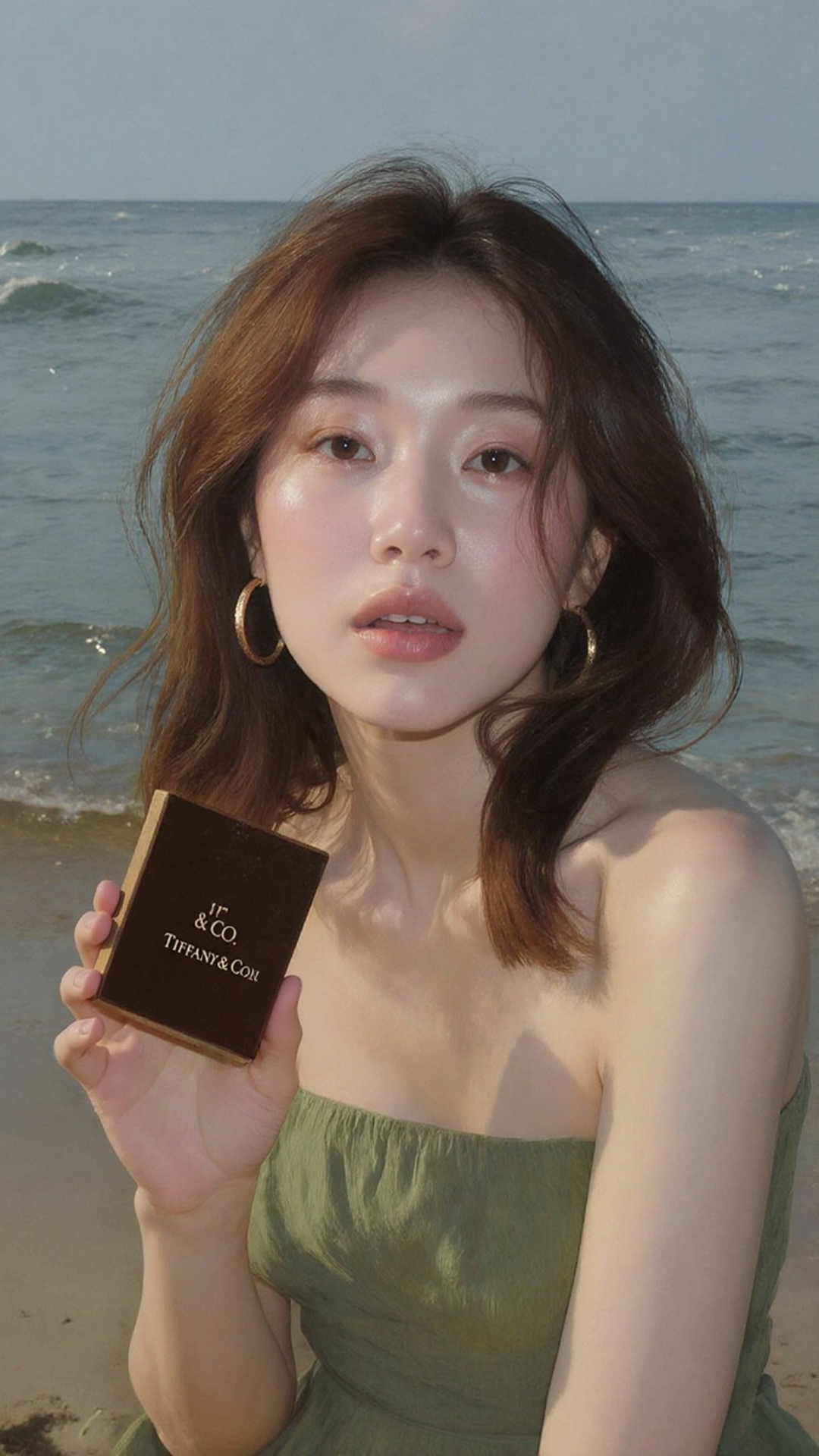 The natural, clean manicure complements the compact's sleek dark brown finish. This warm aesthetic resonates with US market preferences, ensuring the product appears authentic and trustworthy in beach setting scenarios.
