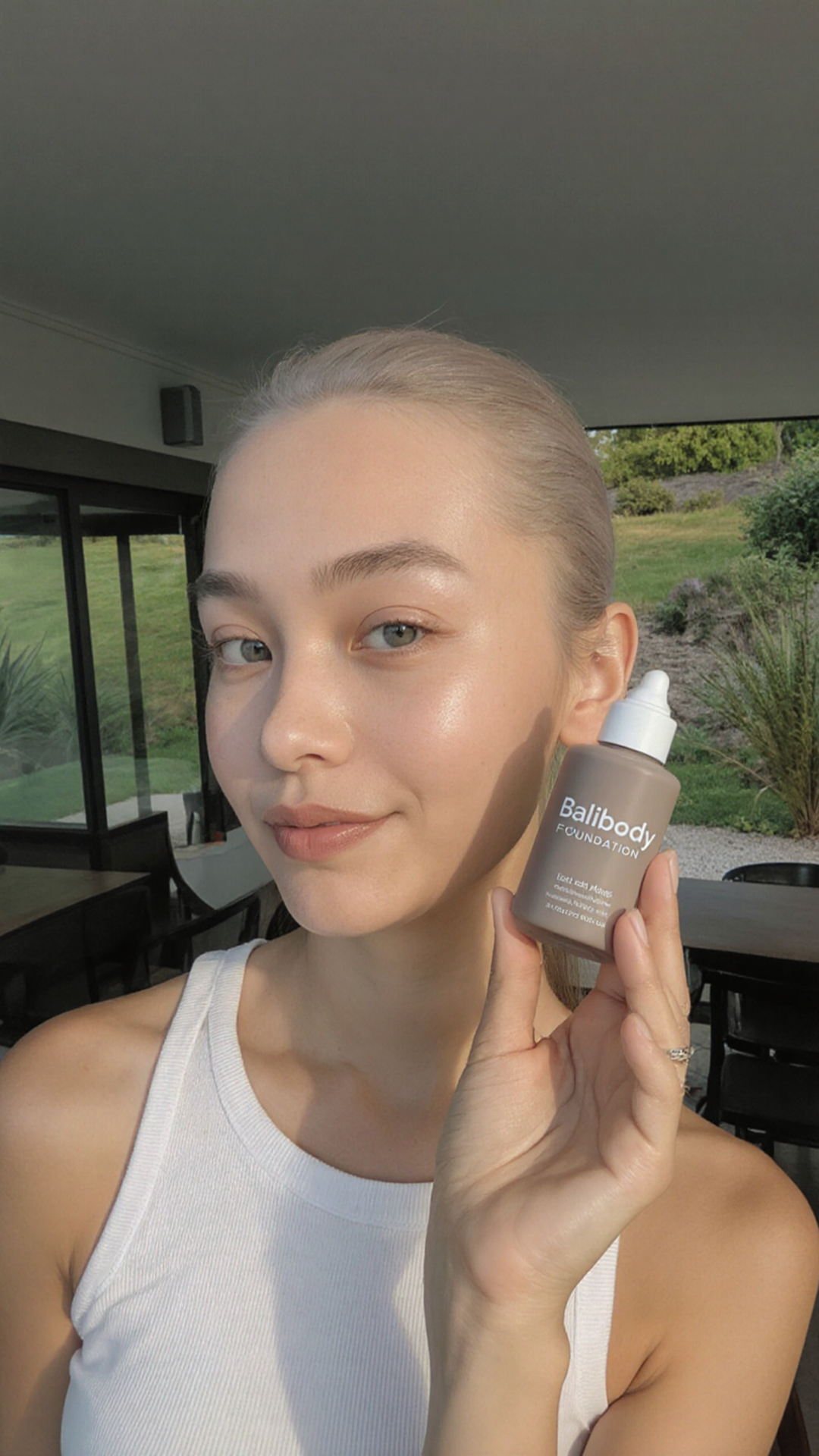 The metallic camera body's subtle fingertip indentation aligns with the hand's long fingers and slight curvature, proving the 35mm film camera's heft and scale. This physical interaction shows no AI-generated flatness, confirming authentic weight distribution.