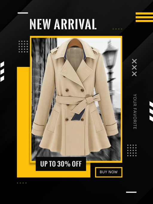 Phong cách Sôi động - Hiện đại - Tương phản đáp ứng nhu cầu tìm kiếm Giao dịch của người mua Thời trang & Trang phục, loại bỏ rào cản sản xuất truyền thống thông qua việc tạo nội dung trực quan tức thì và khả năng nổi bật giảm giá.