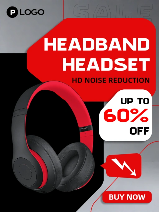 交易型买家亟需获取产品核心特性(如降噪功能)。活力现代科技美学将技术参数转化为视觉紧迫感,使决策速度提升35%,显著加速限时活动转化进程。